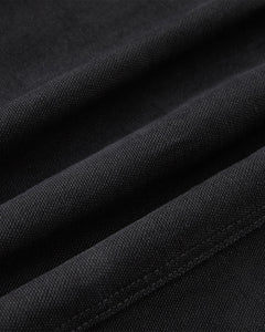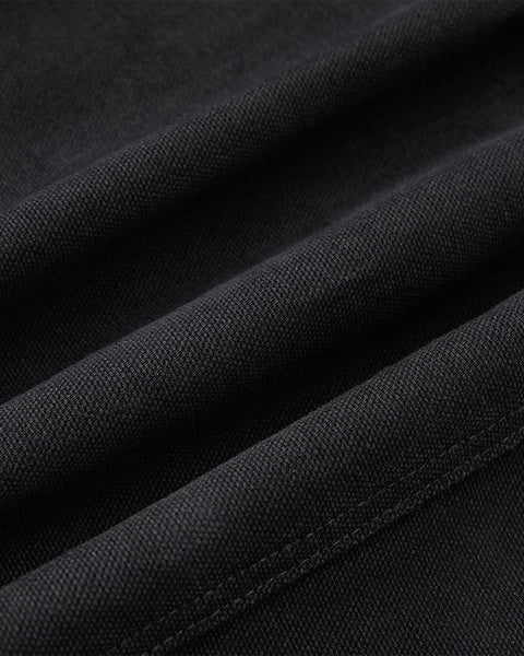 Close-up of folded black fabric from the Sundae School [PRE-ORDER] BLACK FIREMAN CLASP JACKET, showcasing its textured woven surface, soft cotton material, and fine seam stitching.