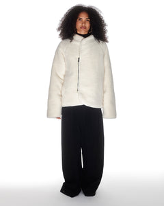 • Reversible puffer/fleece with asymmetric closure inspired by the traditional Korean hanbok