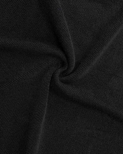 Close-up of black textured fabric with a swirling fold highlights fine knit details and a soft, matte finish—ideal for the Sundae School FADE BLACK HANBOK HOODIE.