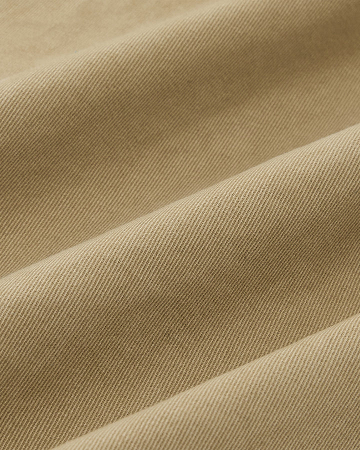 Close-up of beige fabric with diagonal ribbing and gentle folds, ideal for Sundae School's OLIVE HANBOK CHINO PANTS—relaxed, modern barrel-fit chinos inspired by traditional design.